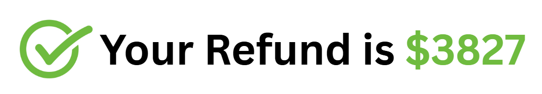 Text stating: 'Your Refund is $3827' with a green checkmark icon.