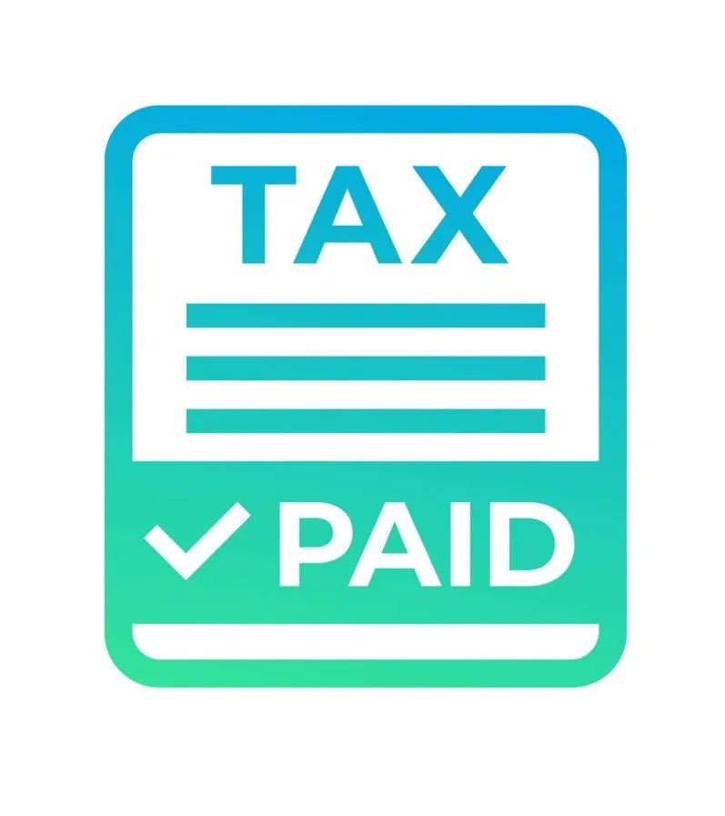 A graphic of a tax form with a checkmark and the word 'PAID' indicating tax payment completion.