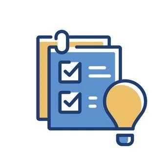Icon of a clipboard with checkmarks and a lightbulb.